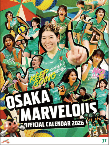 大阪マーヴェラスの選手写真を贅沢に収めた、公式壁掛けタイプの2026年版カレンダーが登場。